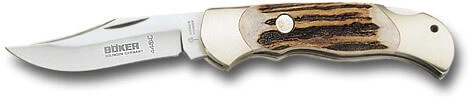 Lame de 9cm et 4mm d’épaisseur en acier inox 440C. Manche en bois de cerf. Cran à pompe. lame amovible avec possibilité d’avoir une scie, une lame drop point ou en céramique (prix sur demande). Un très bon couteau utilitaire.