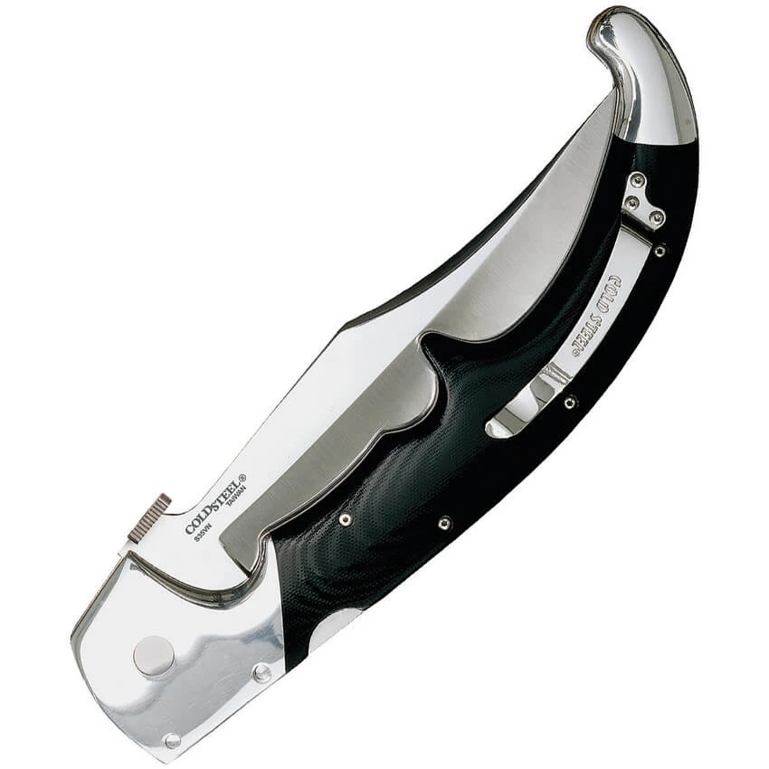 Couteau Cold Steel Espada XL. Lame en acier inoxydable CPM-S35V de 19.5cm. Ergot pour une ouverture ambidextre. Poignée en G10 poli. Mitres en inox. Clip réversible. Longueur totale 43.5cm. Cran à pompe arrière Tri-Ad-lock. Très grand couteau !