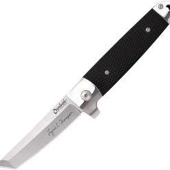 Couteau Cold Steel Oyabun Limited. 12,07cm fermé. Lame tanto de 8,89cm en acier inoxydable S35VN finition satinée. Ouverture par flipper. Cran liner lock avec double sécurité (bouton poussoir au dos) Manche en G10 quadrillé noir. Mitres en aluminium. Clip de poche. Trou pour une lanière. Livré en boîte. Limité à 3500 pièces. Lame signée. Poids : 136g.