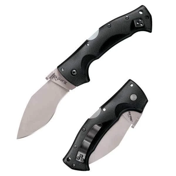 Couteau Cold Steel Rajah III. Lame de 9cm en acier inox AUS10A avec ergot pour l’ouverture. Manche en Grivory. Cran à pompe. Clip. Longueur totale 21.5cm.