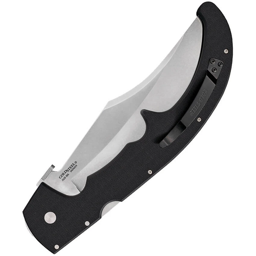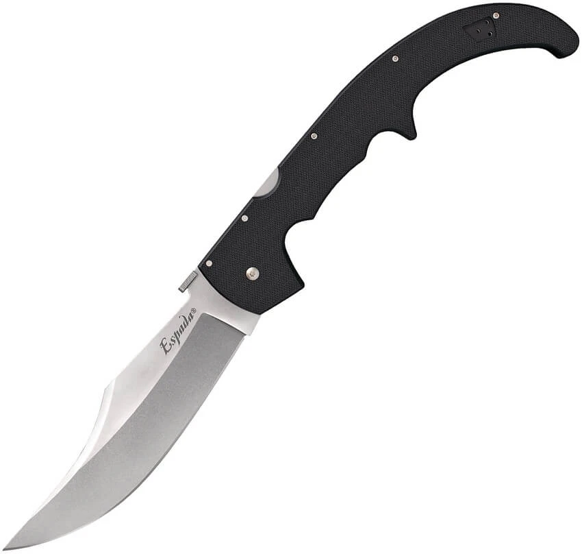 Couteau Cold Steel Espada XL. Lame en acier inoxydable AUS-10A de 19.5cm. Ergot pour une ouverture ambidextre. Poignée en G10 texturé. Clip réversible. Longueur totale 43.5cm. Cran à pompe arrière Tri-Ad-lock. Très grand couteau !