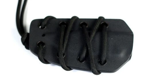Couteau squelette avec lame de 6.8cm et longueur totale de 16.2cm. Etui kydex avec paracorde pour le porter au cou.