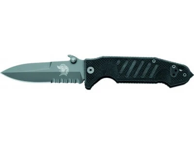 Lame de 9cm en acier N690Co avec traitement DLC semi-dentée. Ouverture ambidextre. Liner lock. Manche de 11cm en G-10 noir avec clip et brise-vitre au bout. Livré en coffret. Insigne Col Moschin des para italiens.