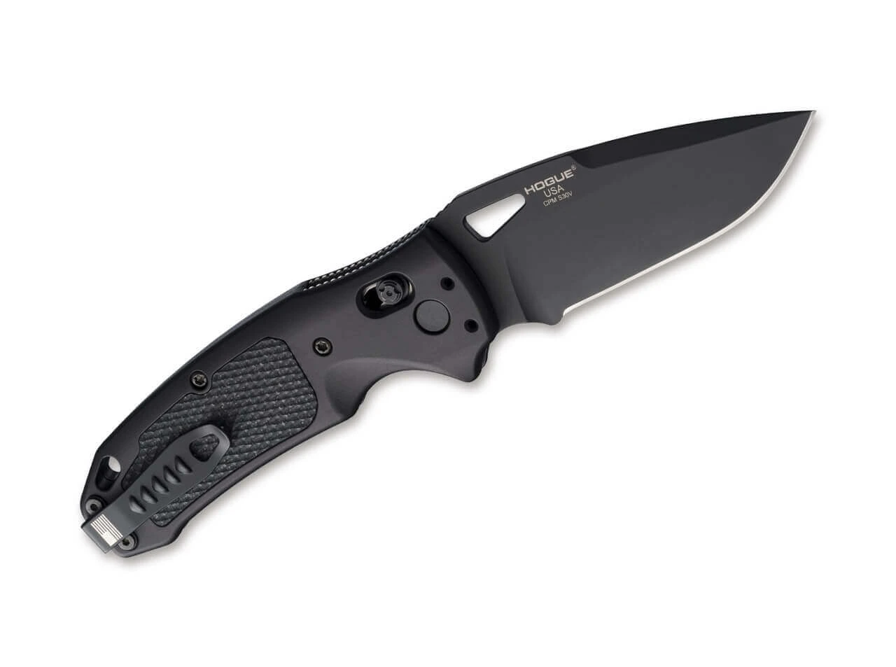 En coopération avec le spécialiste américain des couteaux Hogue, SIG présente le K320 AXG Pro comme un couteau tactique entièrement noir. La lame drop point en acier métallurgique des poudres est équipée d’un et est actionnée par Le robuste ABLE Lock est utilisé pour sécuriser la lame, qui peut être relâchée en appuyant sur le bouton sur le côté. antidérapants , offre un grip exceptionnel. Avec un et un pouvant être positionné à quatre endroits du manche. Livré en pochette zip.