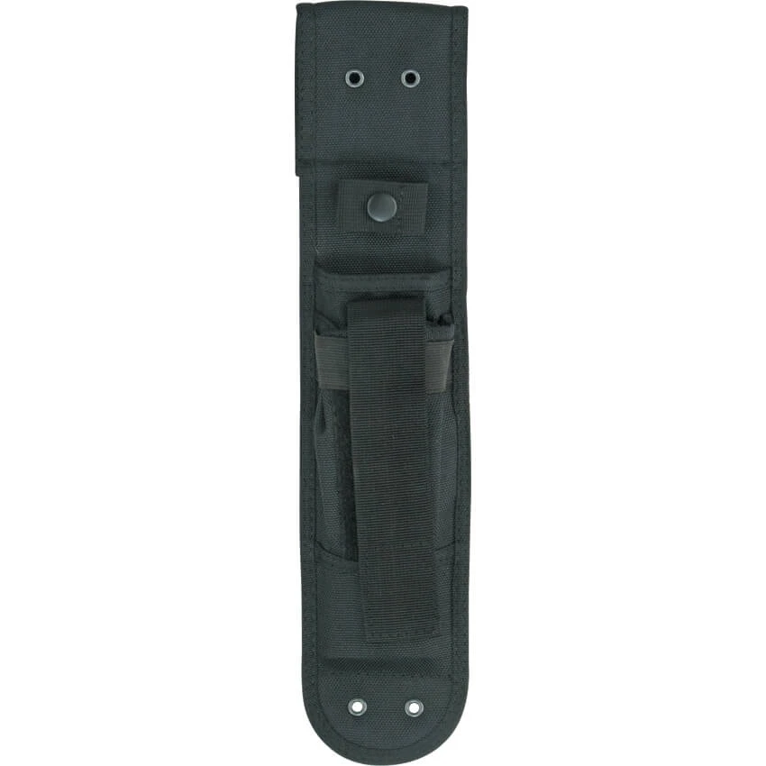 Couteau Combat Utility BKR7 produit par Becker avec lame de 18.5cm en acier inoxydable 1095 Cro-Van avec arrêt pour le pouce. Durci à 56-58 HRC. Full Tang. Poignées en Zytel noires. Trou pour lanière. Gaine de ceinture en nylon balistique noir avec insert de protection et pochette de rangement. Fabriqué aux États-Unis. Longueur totale 32.5cm. Un couteau robuste et fonctionnel.