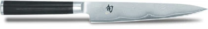Les feuilles de damas qui insèrent au cente un acier VG10 de 61 HRC confèrent au couteau Shun un caractère très haut de gamme. Ainsi, chacun des couteaux devient un pièce incomparable, née de l’art artisanal, de la technique et du design. Lame de 15 cm. Couteau universel.
