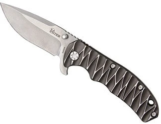 Lame stonewash en acier inox S35VN de 8.9cm avec ouverture D/G par les ergots ou flipper. Manche en titane texturé. Cran frame lock. Clip titane up. Longueur totale 20.7cm.