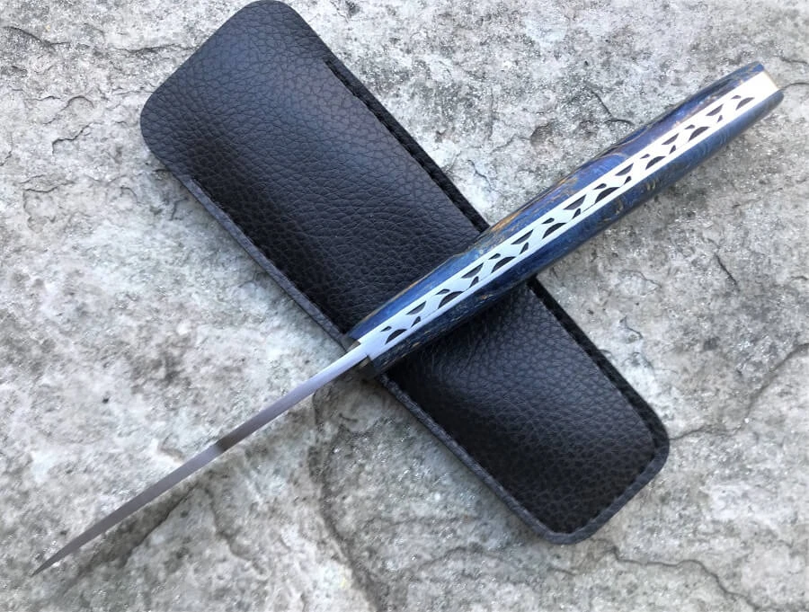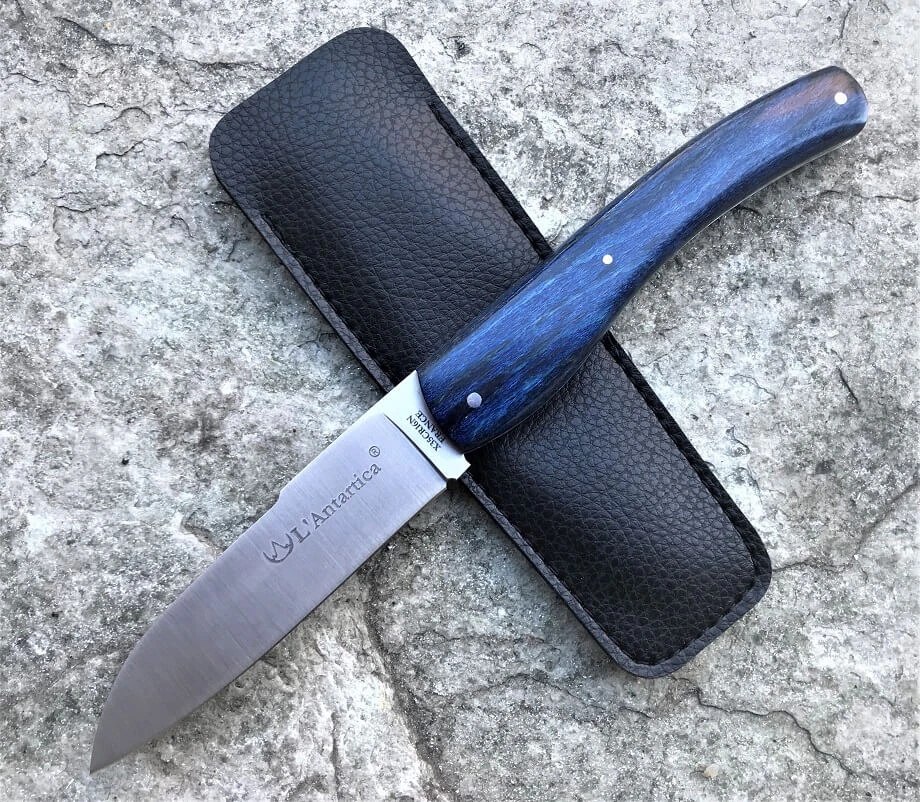 Couteau L’Antartica Laguiole Village. Lame de 9.7cm en acier acier inoxydable martensitique X35CR16N, plein manche de 11.7 cm en hêtre de lAubrac teinté bleu russe (les teintes peuvent différer légèrement selon les modèles) . Cran forcé. Ressort guilloché. Ce couteau a été pensé en référence à l’expédition Polar Pod menée par Jean Louis Etienne, grand explorateur français (marque déposée à l’INPI).