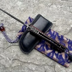 Couteau de Nino modèle Zuava bélière. Lame en acier inox 440C de 8.2cm. finition satinée. Mitre en inox. Cran forcé carré. Ressort inox. Manche en corne de vache. Longueur totale 19cm. Bélère Fabriqué artisanalement en Italie.