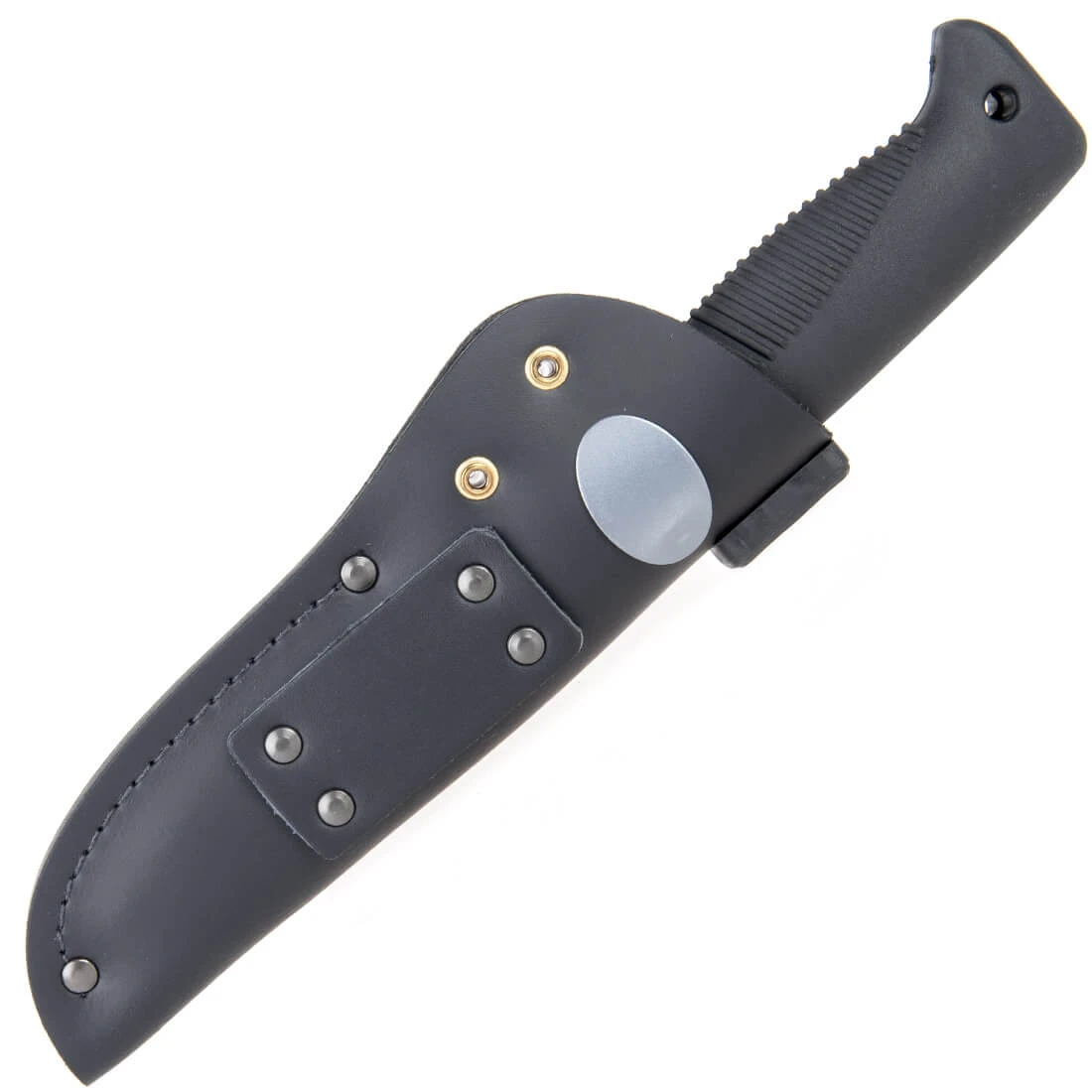 L’étui en cuir inclus (sans la rondelle en acier sur la photo) est doté d’une doublure intérieure protectrice et d’un système de verrouillage innovant offrant une rétention proche du Kydex.
