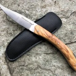 Couteau Salamandra. Lame de 7.6cm en acier inox 440C. Platines inox et plaquettes en ziricote. Cran forcé. Passe-lacet. Longueur totale 17cm. Fabriqué en Espagne (Albacete).