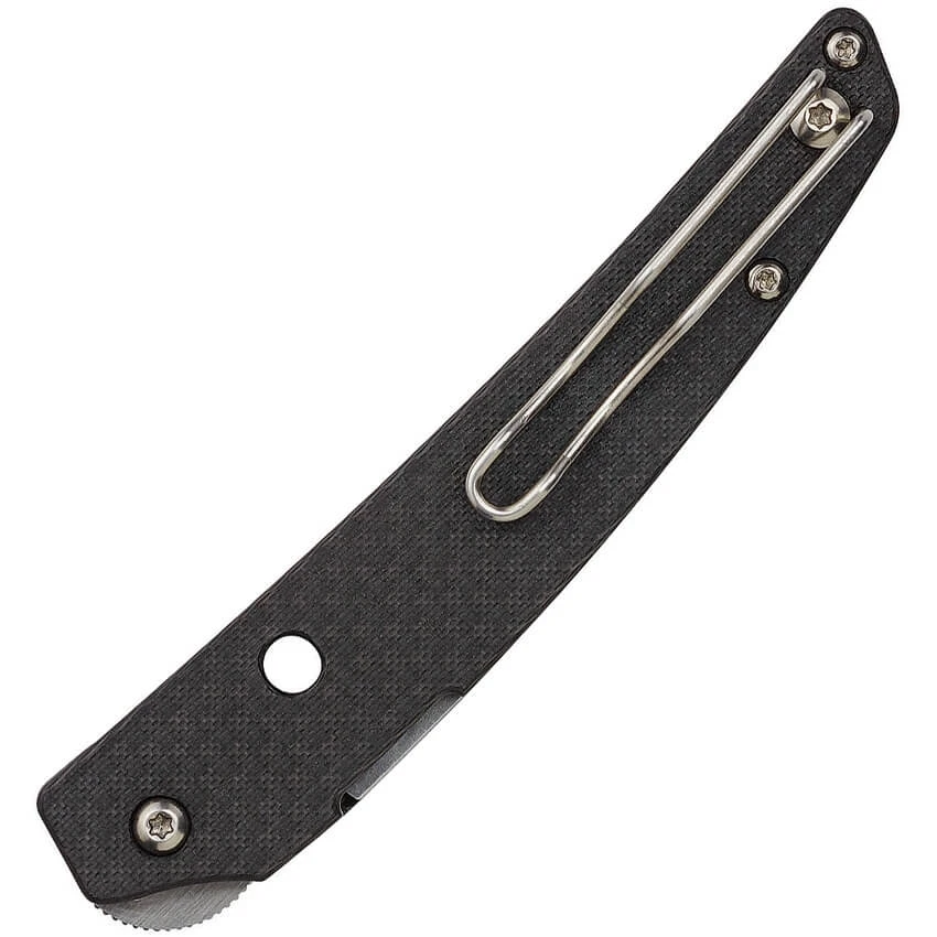 Couteau Spyderco Ikuchi avec lame satinée de 8.4cm. en acier inoxydable CPM S30V. Ouverture ambidextre par roulement de la lame. Poignée de couleur noire en fibre de carbone mélangé de G10 laminé. Clip. Compression lock. Longueur totale 19.3cm. Design Paul Alexander. Poids 69g.