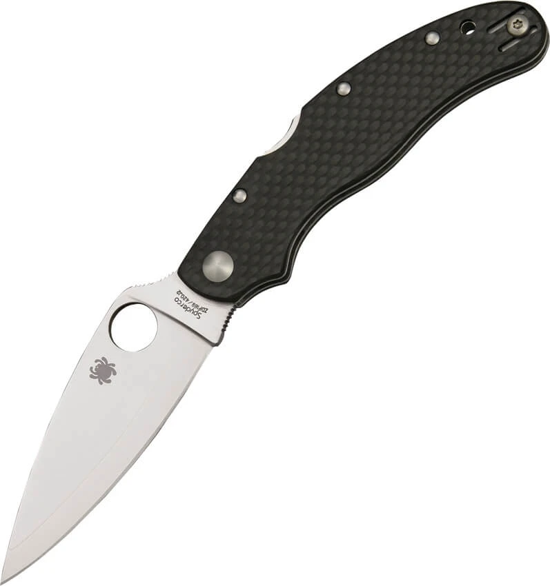 Lame en acier inox laminé (san-maï) ZDP-189/420J2 de 80mm (surface de coupe). Manche en fibre de carbone. Cran à pompe. Clip.